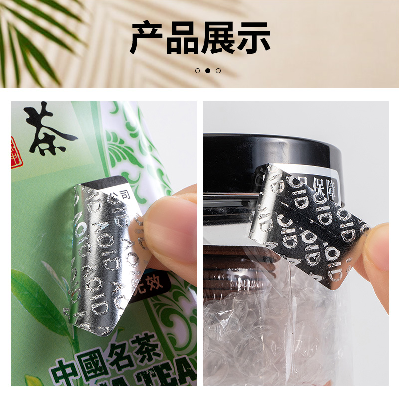 void防拆防伪标签一次性亚银镭射封条撕毁无效易碎封口贴贴纸定制