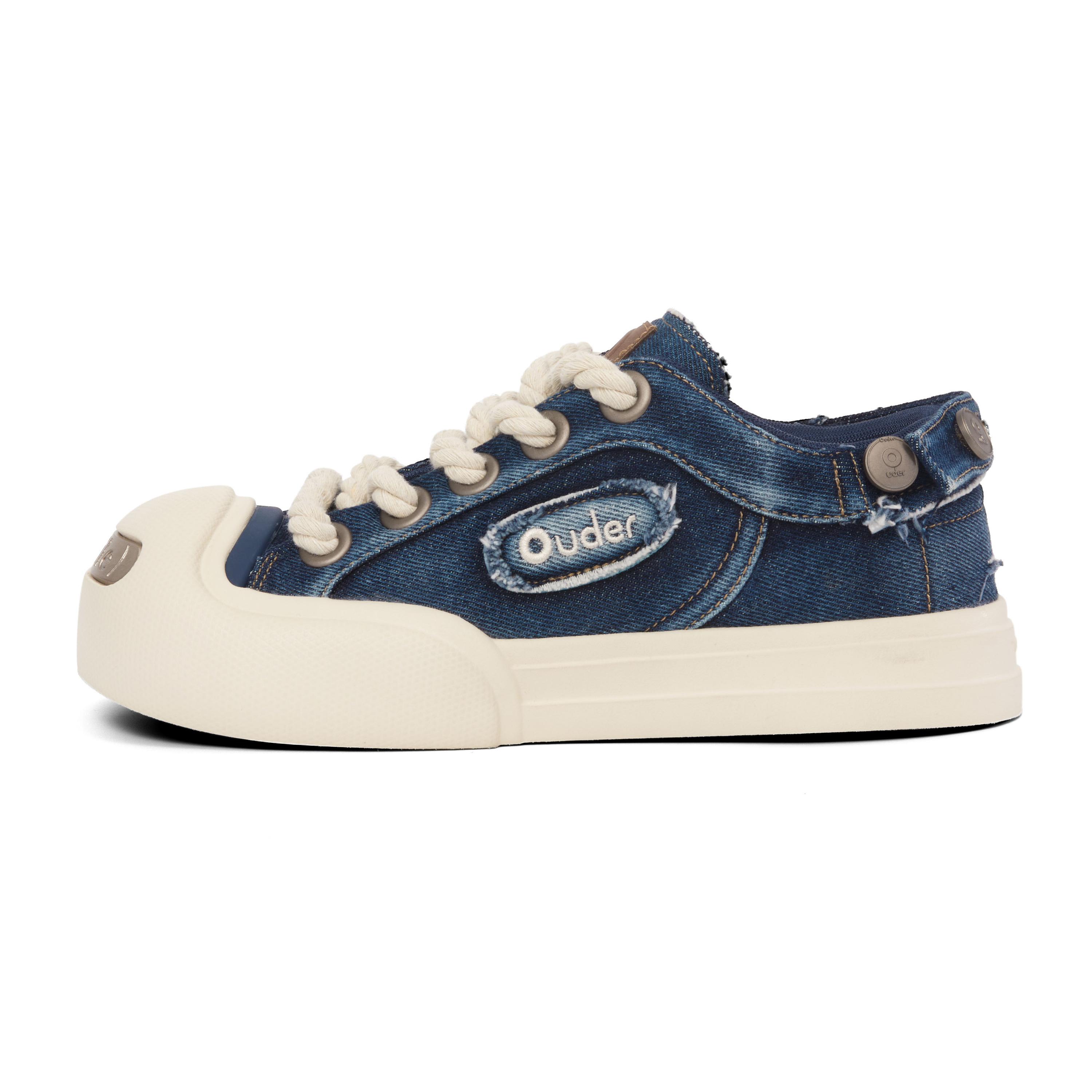 【左航同款】Ouder smiler开口笑帆布鞋圆头丑萌板鞋牛仔大头鞋子