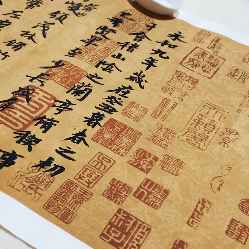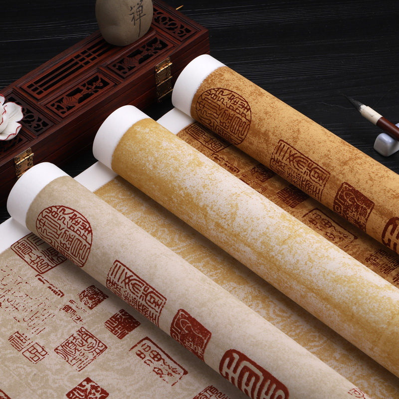 宣纸半生熟四尺六尺对开带印章王羲之空白仿古兰亭序作品专用毛笔书法原字帖临摹纸蜡染宣纸二王行草小楷宣纸