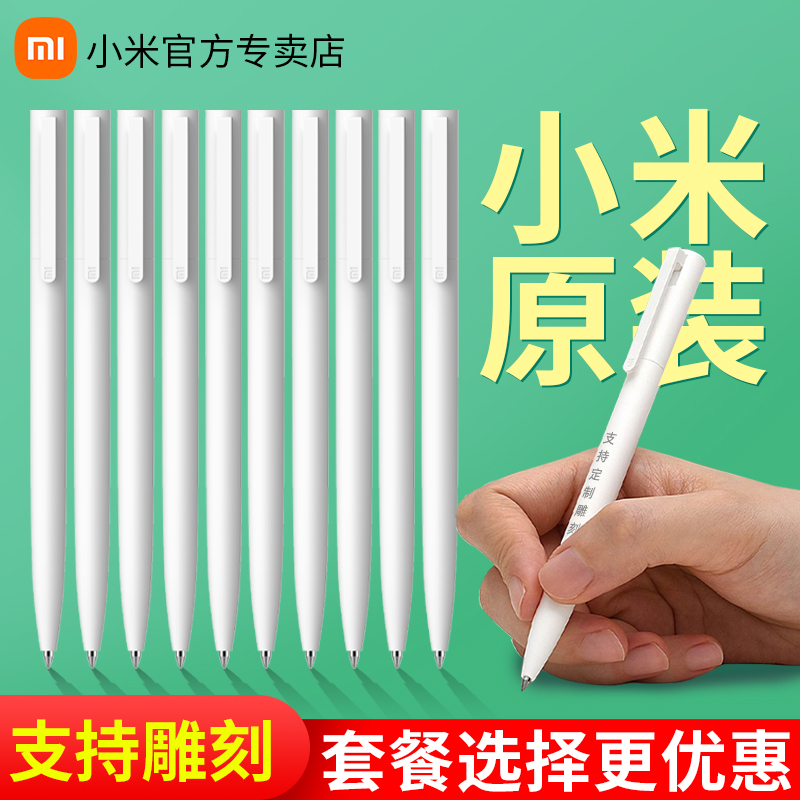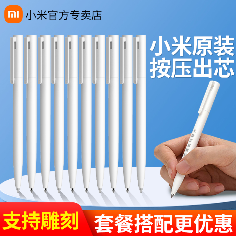 小米巨能写笔按动式签字笔按压高颜值定制笔中性笔水笔日系ins直液考试文具走珠圆珠笔芯黑红色刻字logo速干
