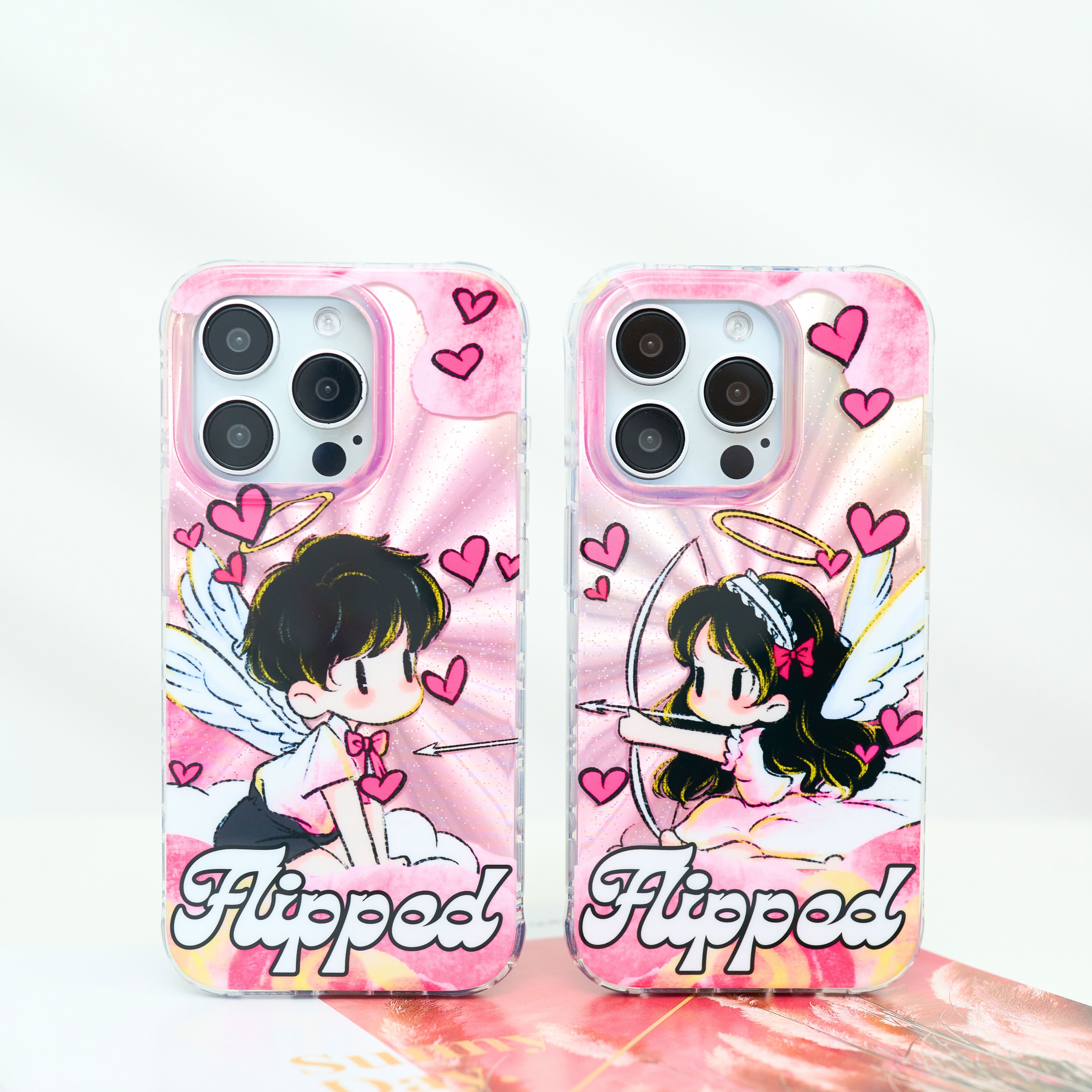 【支持17】情侣款射中你的心系列艺术授权双层半透明镭射手机壳可爱卡通IMDiPhone16PM苹果15华为p70mate60