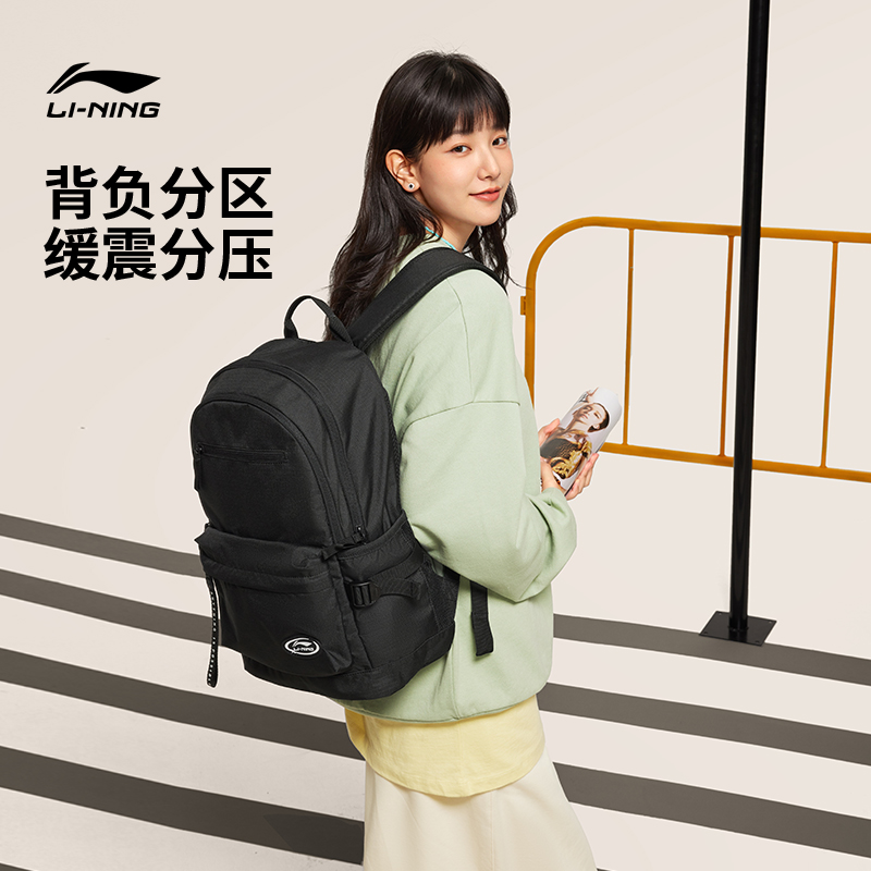 李宁双肩包女款学生大容量轻便通勤电脑背包高颜值旅行登山书包男