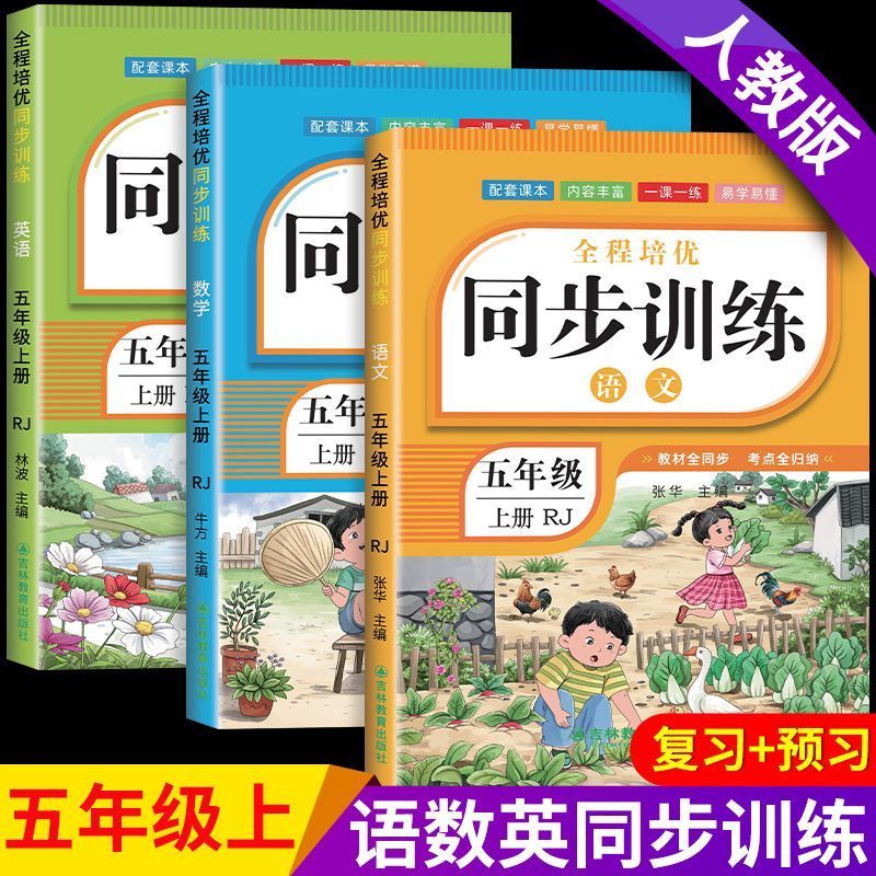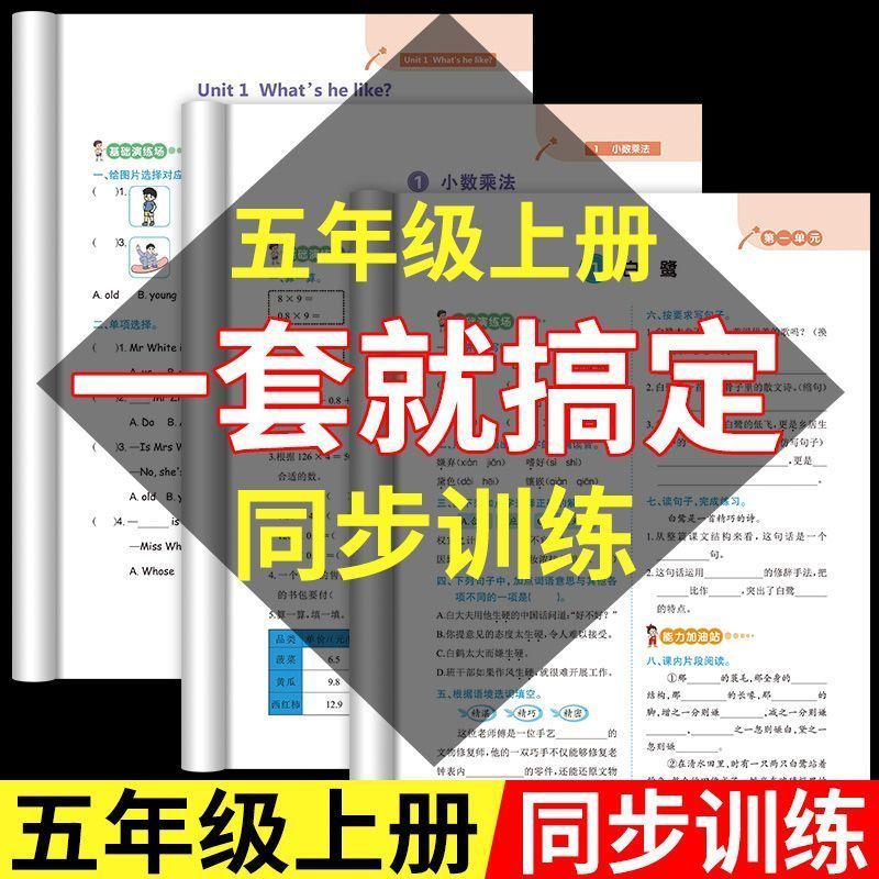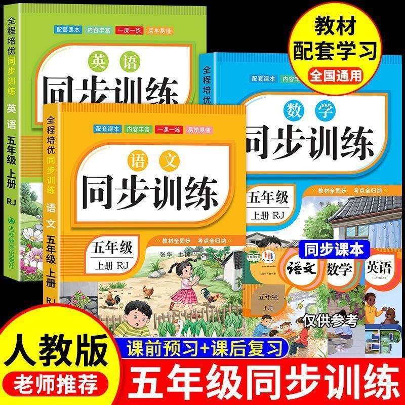 五年级上册同步训练册语文数学英语全套三册专项训练人教版课本教材同步练习册一课一练习题作业预习课后巩固大全期中期末年级测试