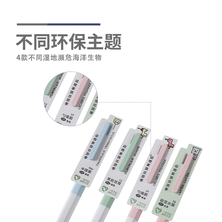 晨光 濒危动物湿地2 按动中性笔子弹头0.5黑色速干可降解环保水笔简约博物K2505/7中小学生书写备考使用文具