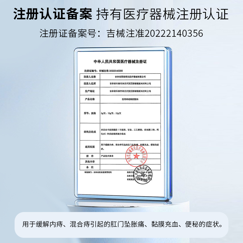 医用痔疮凝胶敷料卡波姆缓解内痔混合痔引起的坠胀痛黏膜充血便秘