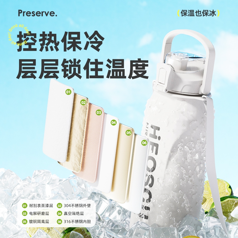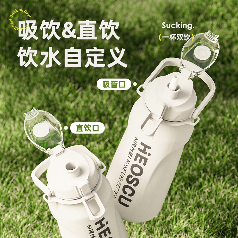 316不锈钢保温杯大容量大号男款1000ml2000运动水壶吸管水杯子