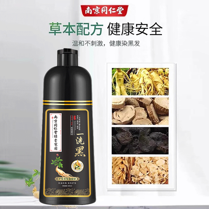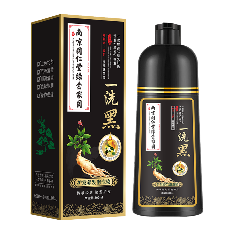 南京同仁堂染发剂泡泡染纯植物黑色盖白发爸妈专用无刺激遮白发膏