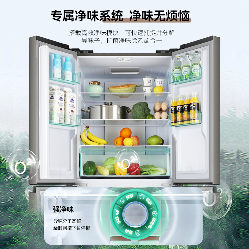 美的508法式双系统多门净味四门双循环无霜一级大容量家用冰箱