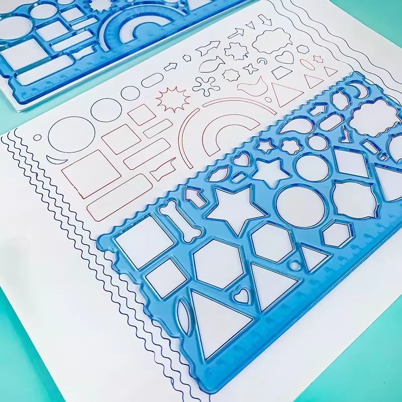 多功能万花尺7件套装儿童中小学生手抄报模版绘图尺子旋转几何尺子精美果冻色尺20cm直尺三角板量角器高颜值