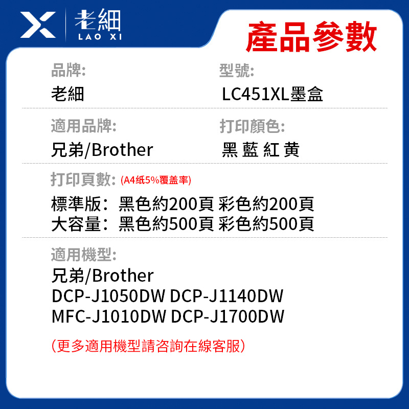 适用兄弟LC451XL墨盒Brother DCP-J1050DW J1140DW J1010DW打印机大容量副厂黑色彩色墨水J1700DW代用墨水