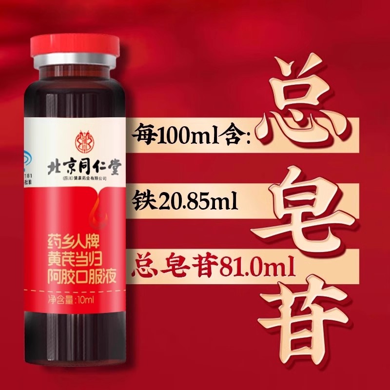 北京同仁堂黄芪当归阿胶口服液补气养血调理不上火女生贫血旗舰店