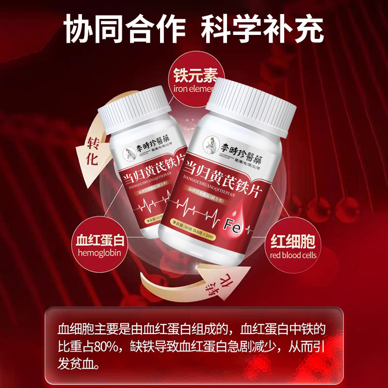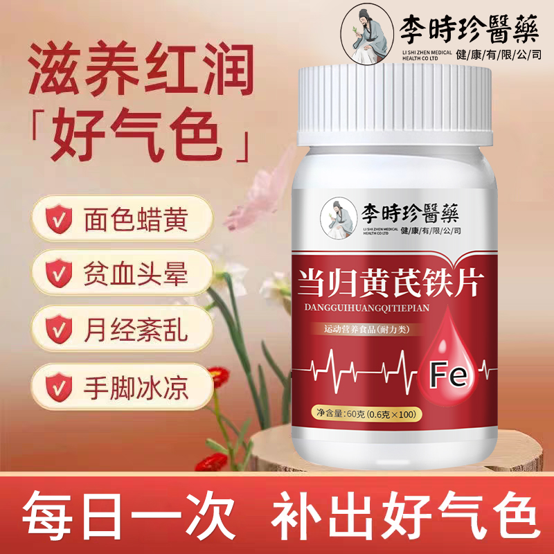李时珍医药当归黄芪铁片气血双补缺铁阿胶枣改善气虚女生补血常备