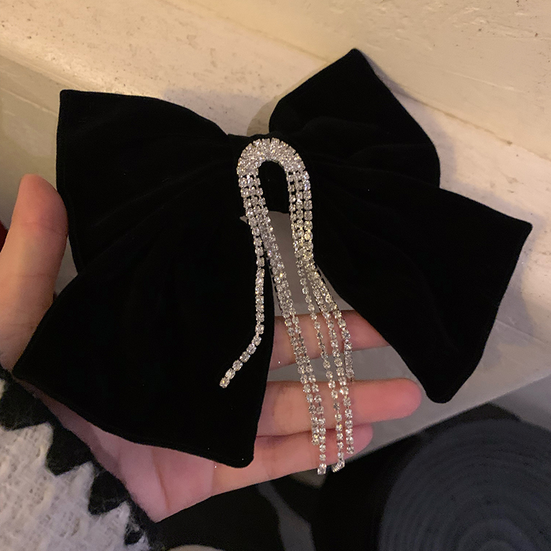 流苏蝴蝶结发夹~富家千金赫本顶夹高级感复古法式小香风丝绒发饰