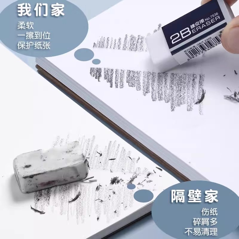 新款4b橡皮擦小学生专用儿童安全无毒像皮擦不留痕擦字成线素描无屑超干净象皮擦像笔擦一年级幼儿园2b橡皮檫