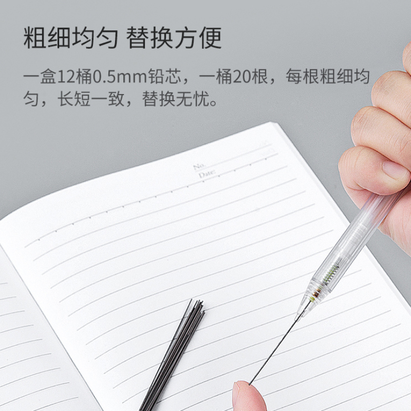 广博自动铅笔芯0.5不易断大容量自动笔铅芯2比自动铅笔笔芯小学生专用hb自动铅笔铅芯活动笔铅芯120mm铅芯长