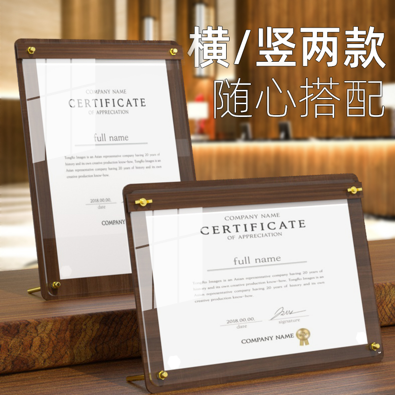 A4荣誉证书框实木相框定制高档专利证书展示牌珠宝鉴定授权书聘书获奖状装裱框桌面摆台优秀员工证书打印订制