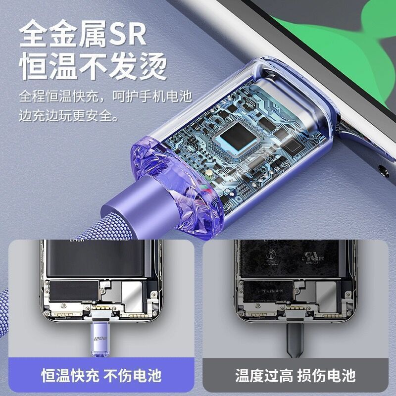 快冲冲pd120w快充线适用华为p70苹果15/16小米双typec手机数据线充电线ctoc平板电脑笔记本ipad闪公对公车载