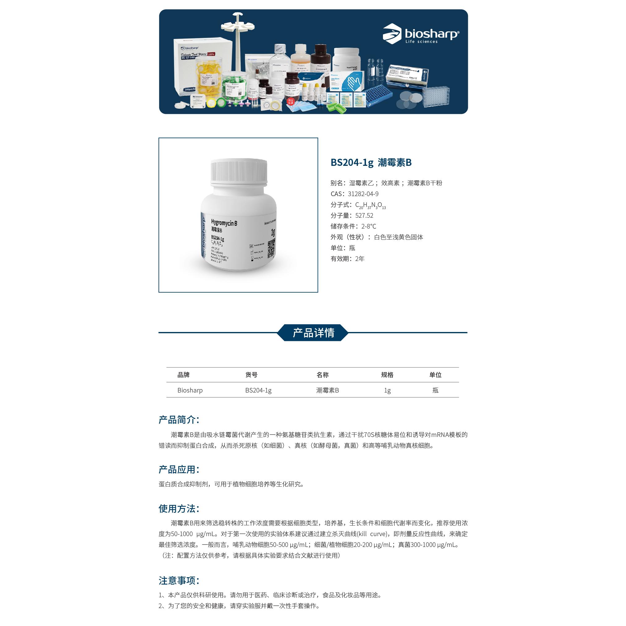 BS204-1g 潮霉素B/Hygromycin B