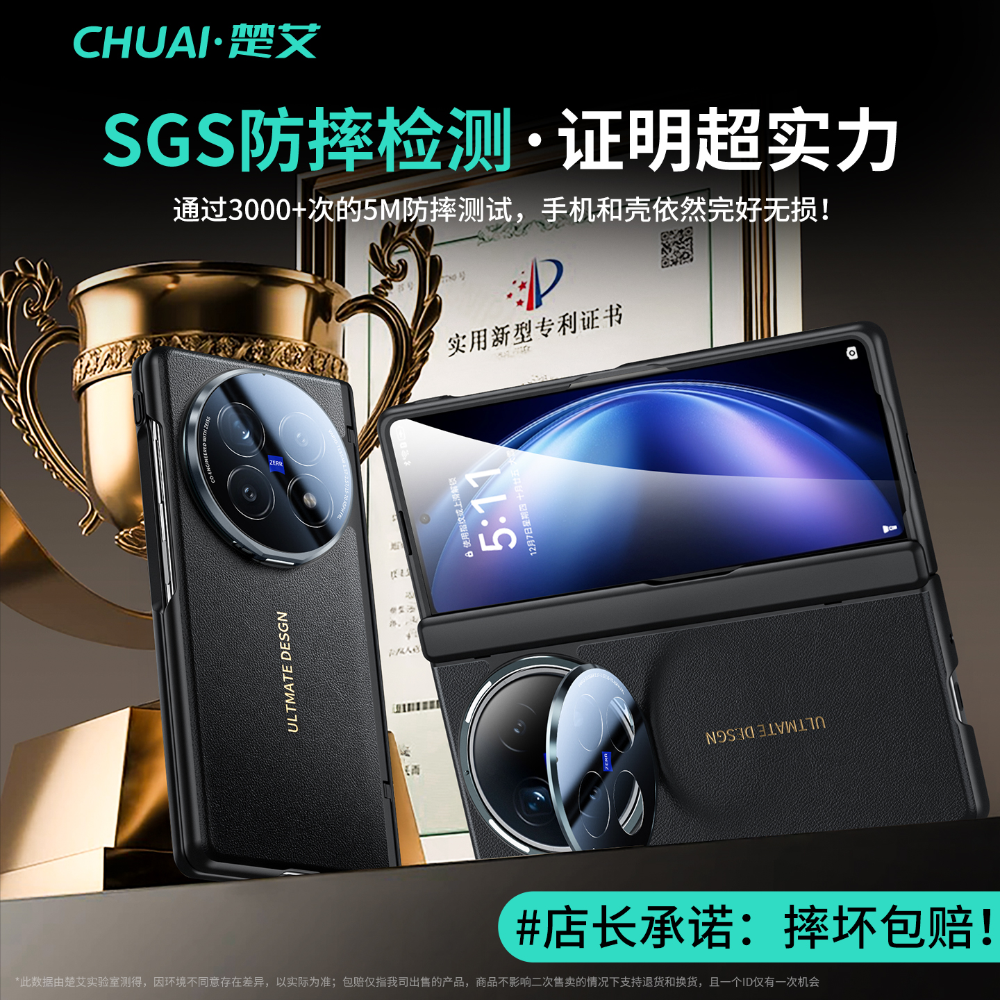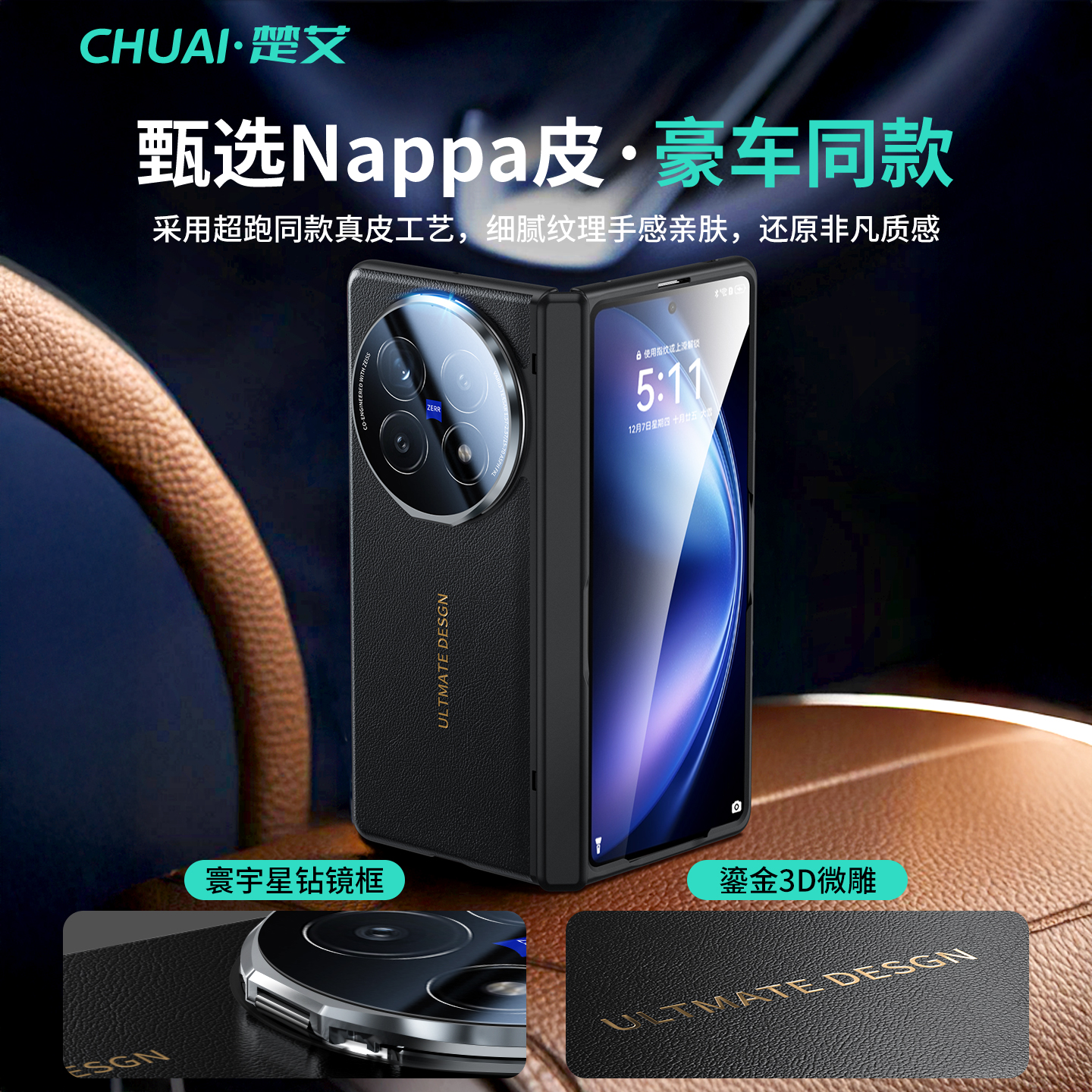 【超强防护】楚艾适用vivoxfold5中轴保护手机壳折叠屏全包防摔fold5pro新款保护套真皮磁吸旋转支架铰链男女