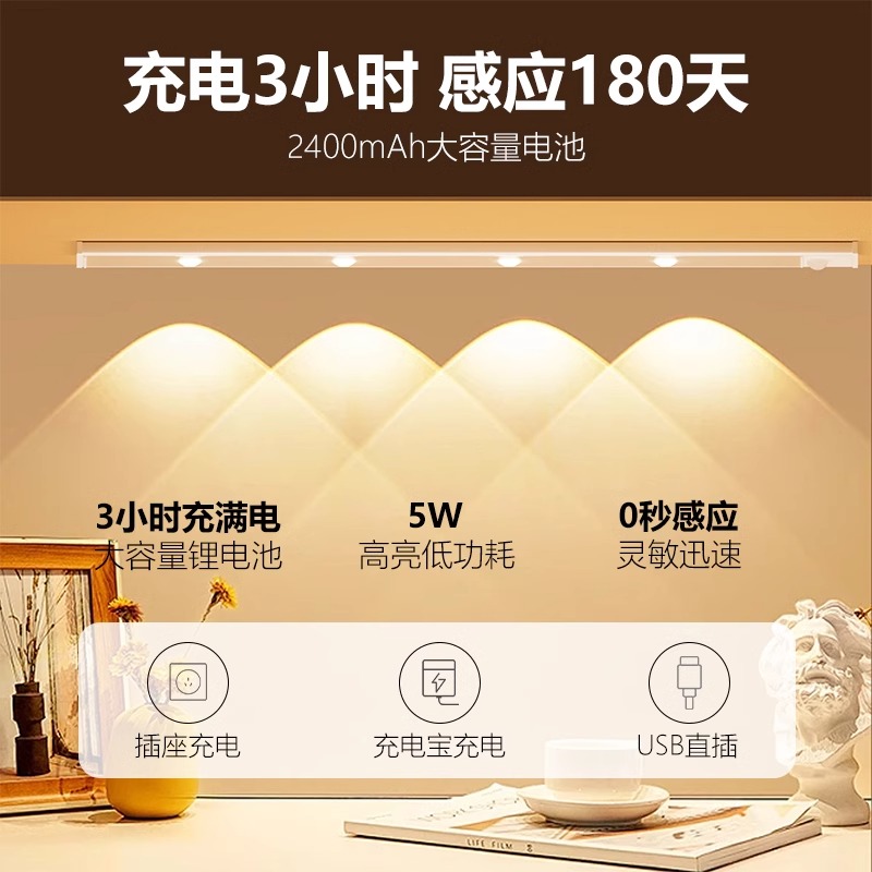 led橱柜灯充电款人体感应灯条衣柜灯卧室睡眠宿舍小夜灯磁吸长条