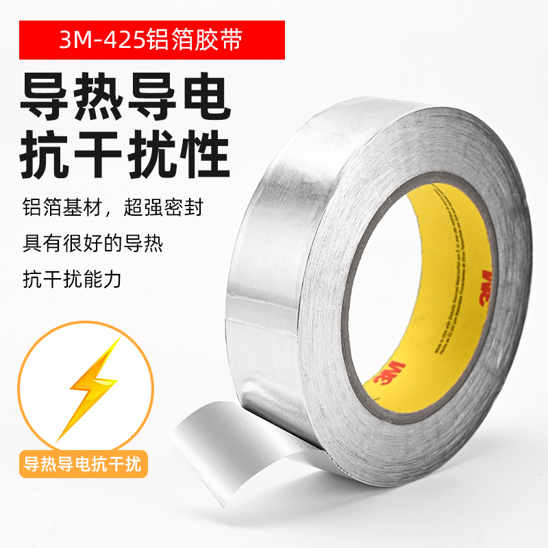3M425防水防火耐高温铝箔胶带耐腐蚀抗干扰水管管道加厚阻燃密封