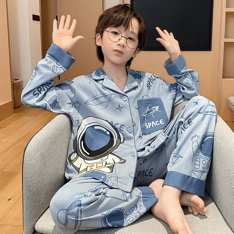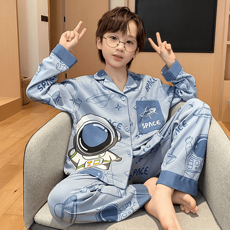 纯棉男童睡衣春秋季男孩新款卡通套装儿童长袖中大童青少年家居服
