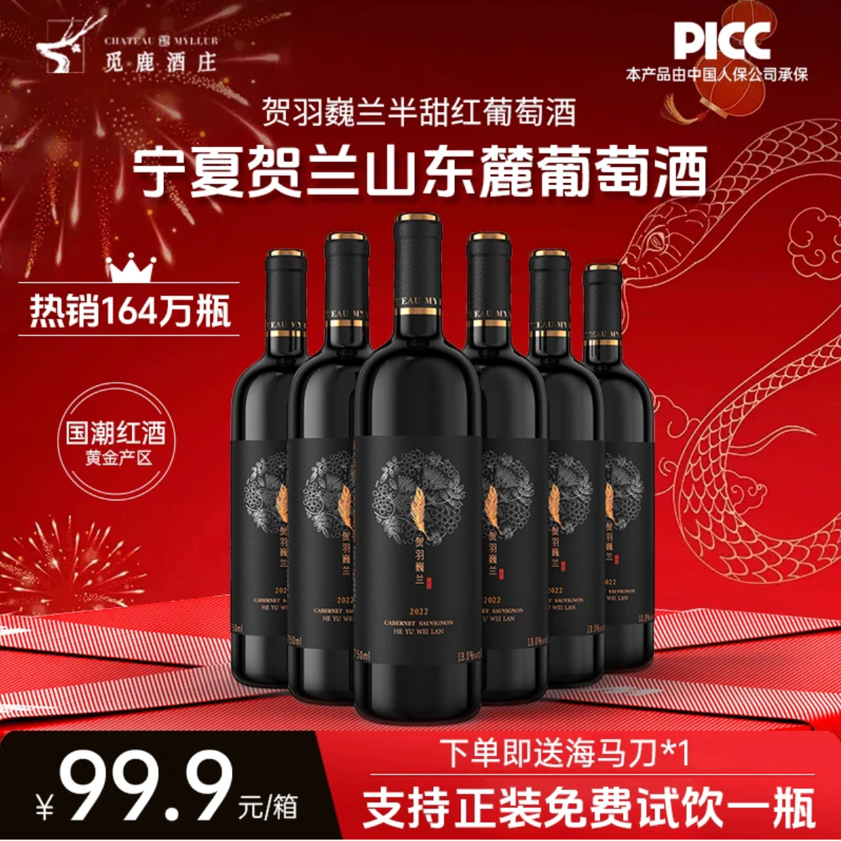 精选红酒宁夏贺兰山东麓红葡萄酒赤霞珠半甜红酒6瓶750ml【酒水节