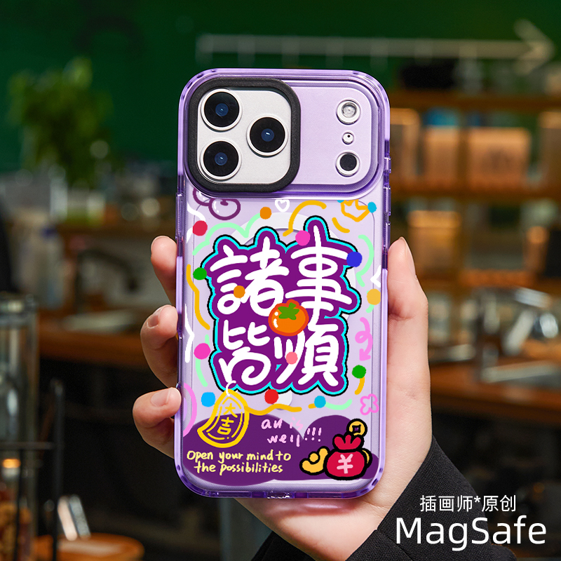 创意文字诸事皆顺iPhone17promax手机壳有钱花16plus适用苹果15磁吸透明防摔17Air春节14喜庆13紫色带挂绳12