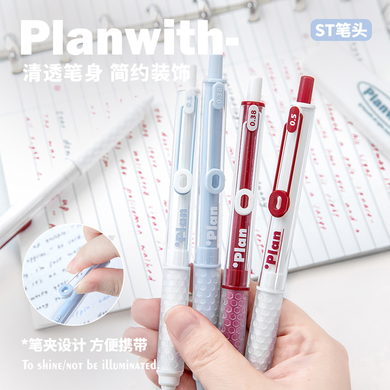 Planwith中性笔高颜值ins风按动黑笔刷题笔速干顺滑做笔记用红笔