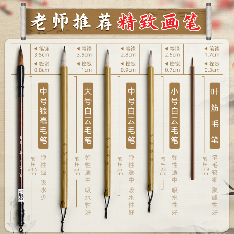 国画颜料初学者套装水墨画中国画用品工具全套12色24色工笔画毛笔宣纸材料儿童小学生美术课专用入门一整套