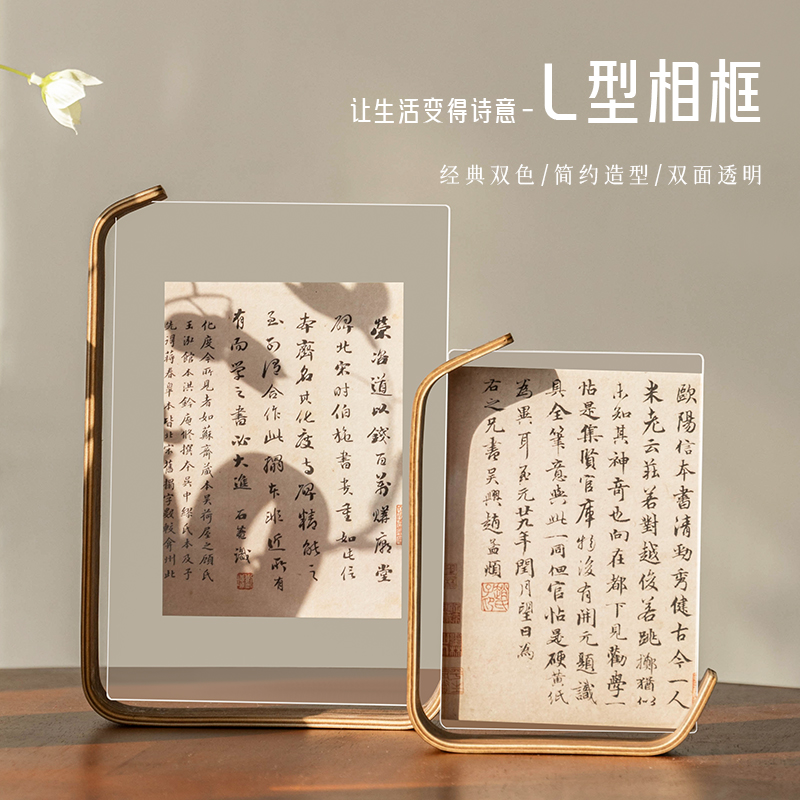 创意亚克力透明装裱字画书法文创diy相框空框定制实木摆台6寸打印