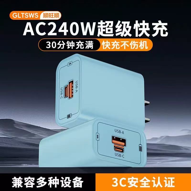 AC240W超级快充手机充电器头适用苹果151617华为小米充电线套装机一拖三适用苹果华为type-c安卓所有手机通用