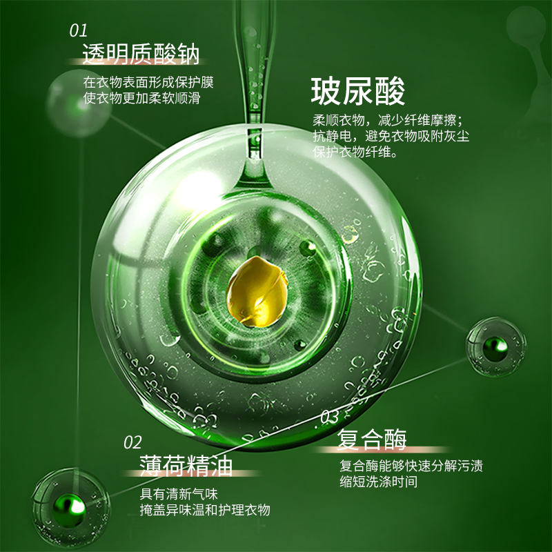 玻尿酸香氛洗衣液深层洁净强力去污柔顺抑菌96小时持久留香
