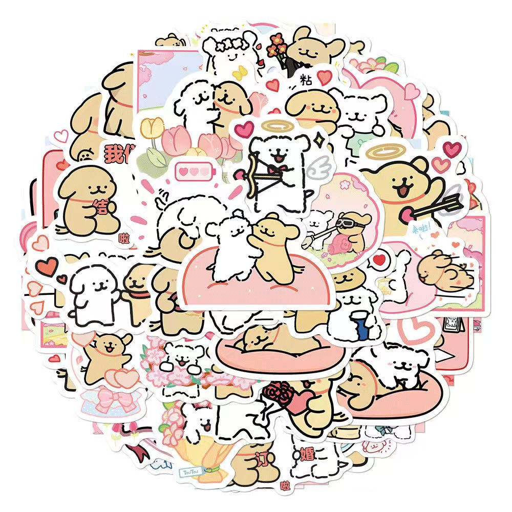 160张爱与小狗贴纸可爱卡通线条小狗热恋期情侣创意diy装饰贴纸