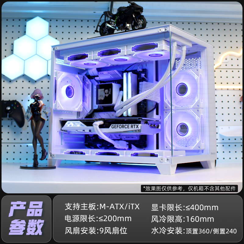 航嘉S980/S960海景房机箱电脑台式主机atx侧透全视版matx白色水冷