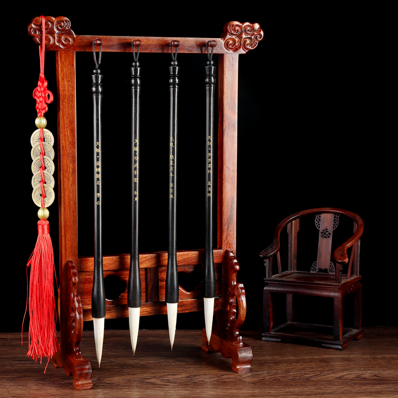 红木文昌笔架挂4支刻诗人毛笔学生书桌摆件高端免安装男女局位子