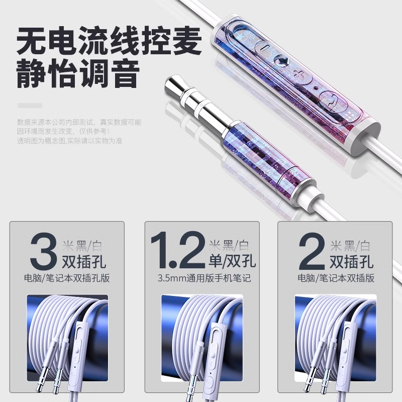 耳机有线入耳式台式电脑usb电竞游戏笔记本带麦二合一圆孔2米加长
