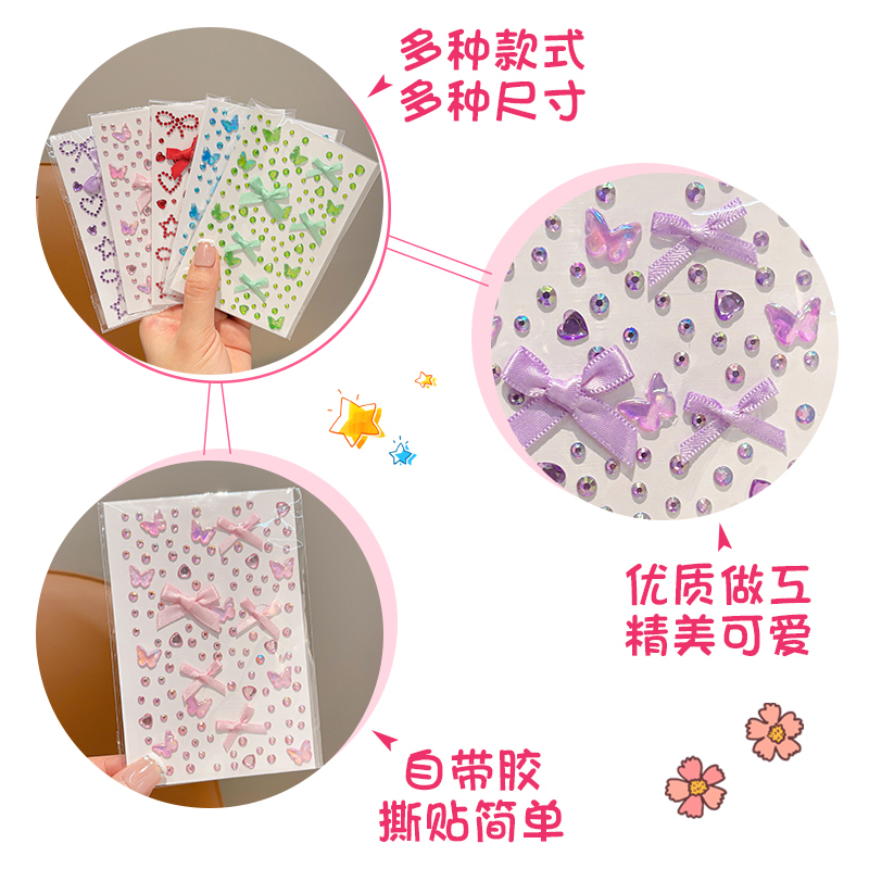 2025新款儿童脸部贴钻蝴蝶结爱心水钻贴纸小女孩演唱会舞台妆容化妆贴眼角宝石妆贴饰品免胶自粘防水闪钻玩具