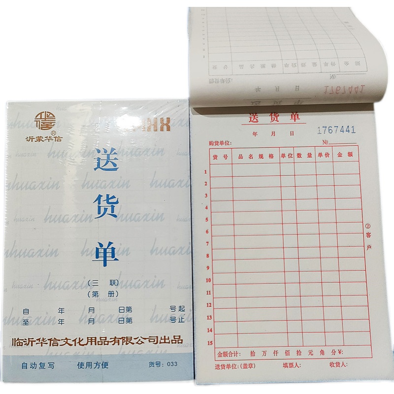 沂蒙华信32开二三四联销货清单出入库送货单等无碳复写本自带垫