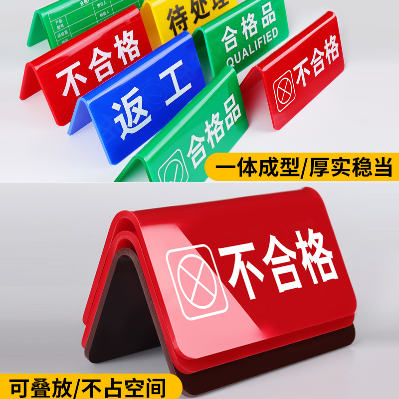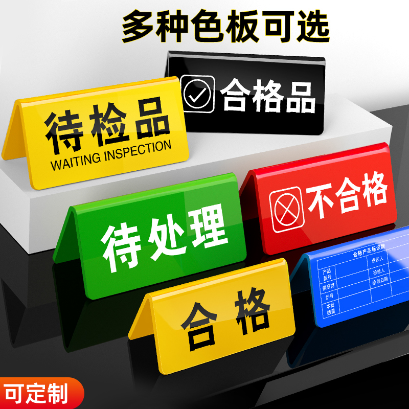 亚克力质检指示牌仓库产品状态标识牌合格不合格待检桌面检验三角牌工厂车间标识半成品不良品分类标示牌定制
