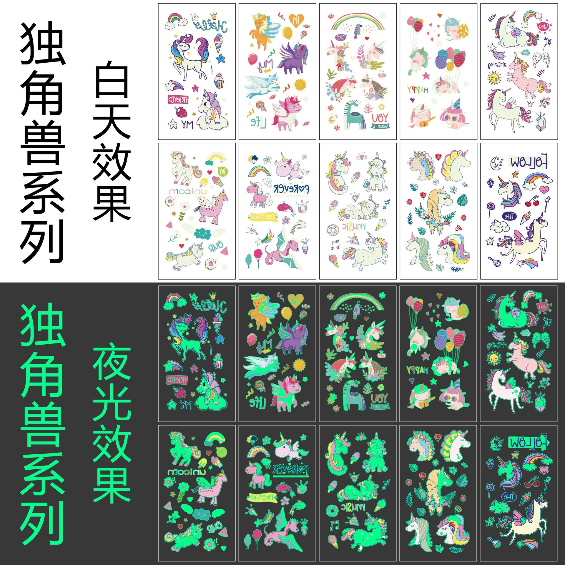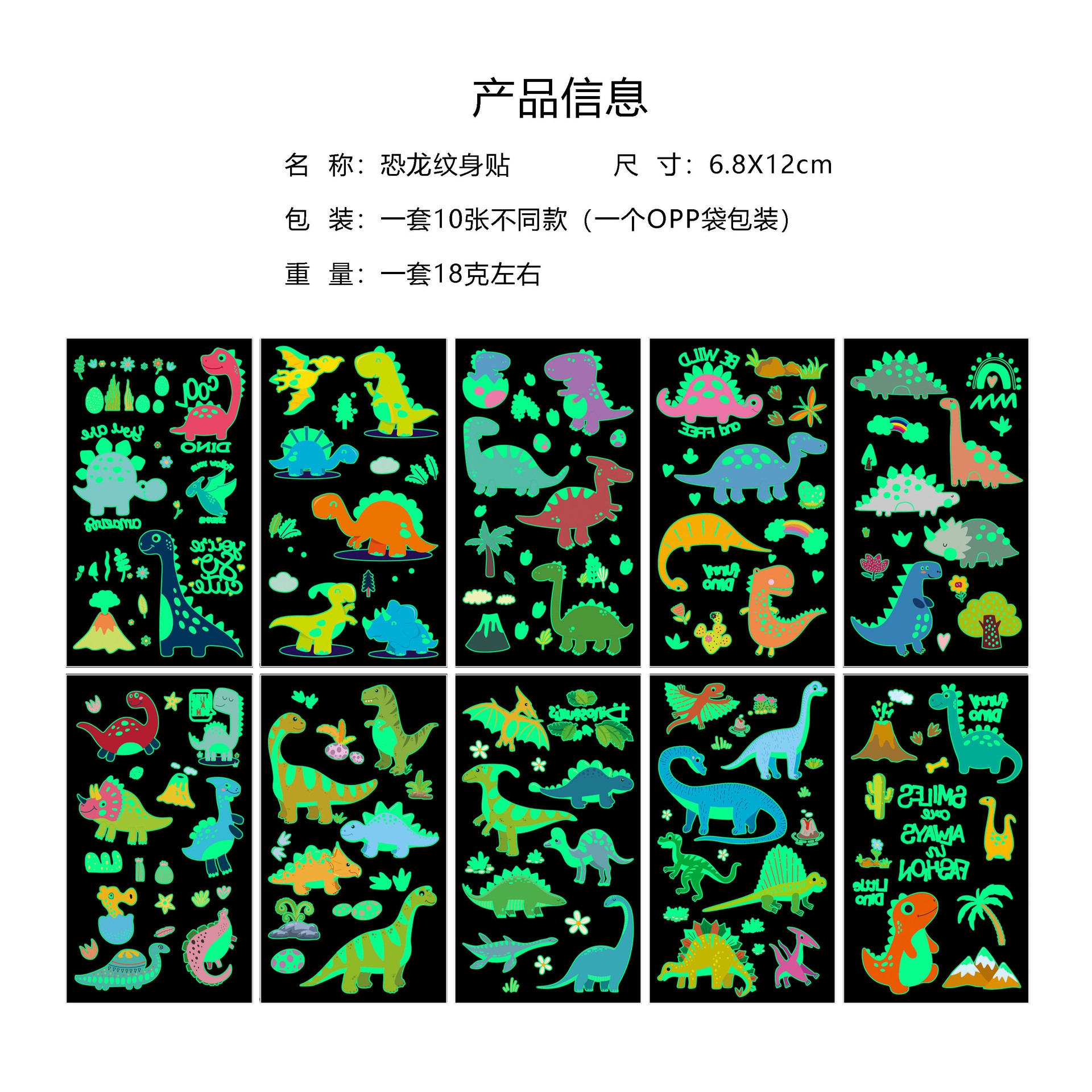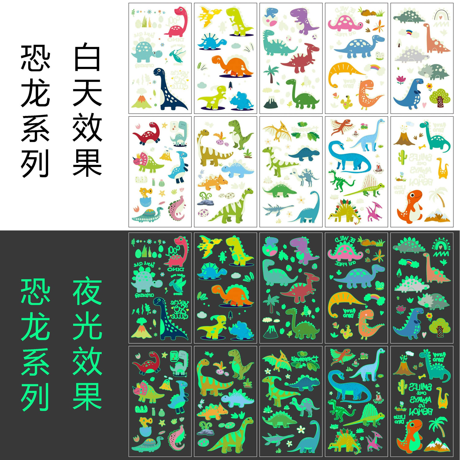 儿童夜光纹身贴可爱卡通恐龙美人鱼独角兽小恐龙估咕卡火新款贴纸