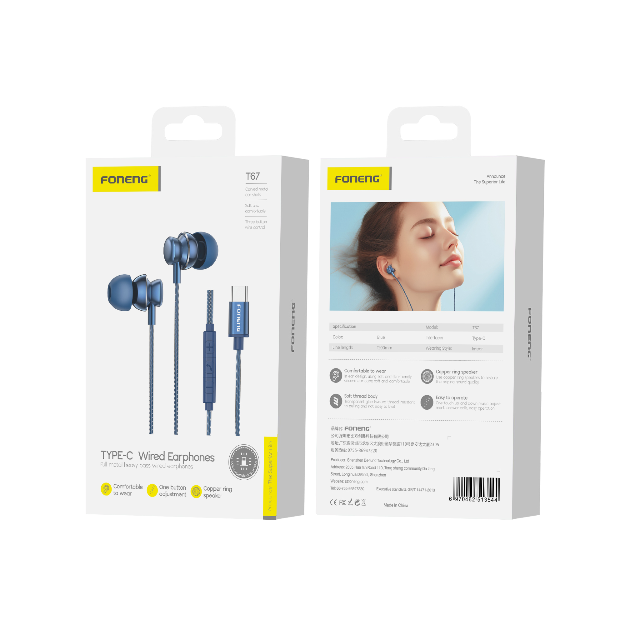 Foneng蜂能typec带麦可调加减音立体音乐通话TypeC有线大扁口耳机