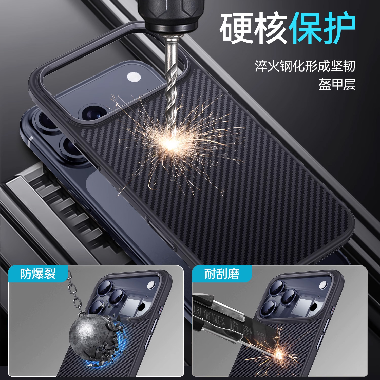 升级相机键全包】适用新款苹果iphone17promax韩淼手机壳17Pro超薄凯夫拉磁吸高级感碳纤维纹保护壳旋转支架