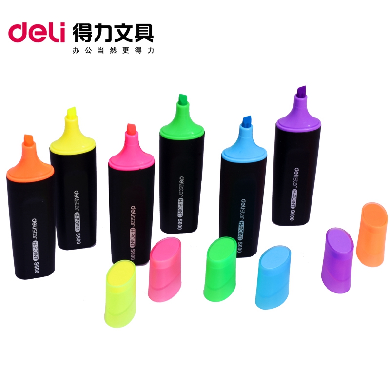 得力S600荧光笔彩色大容量标记笔学生用划线重点记号笔斜头注释笔