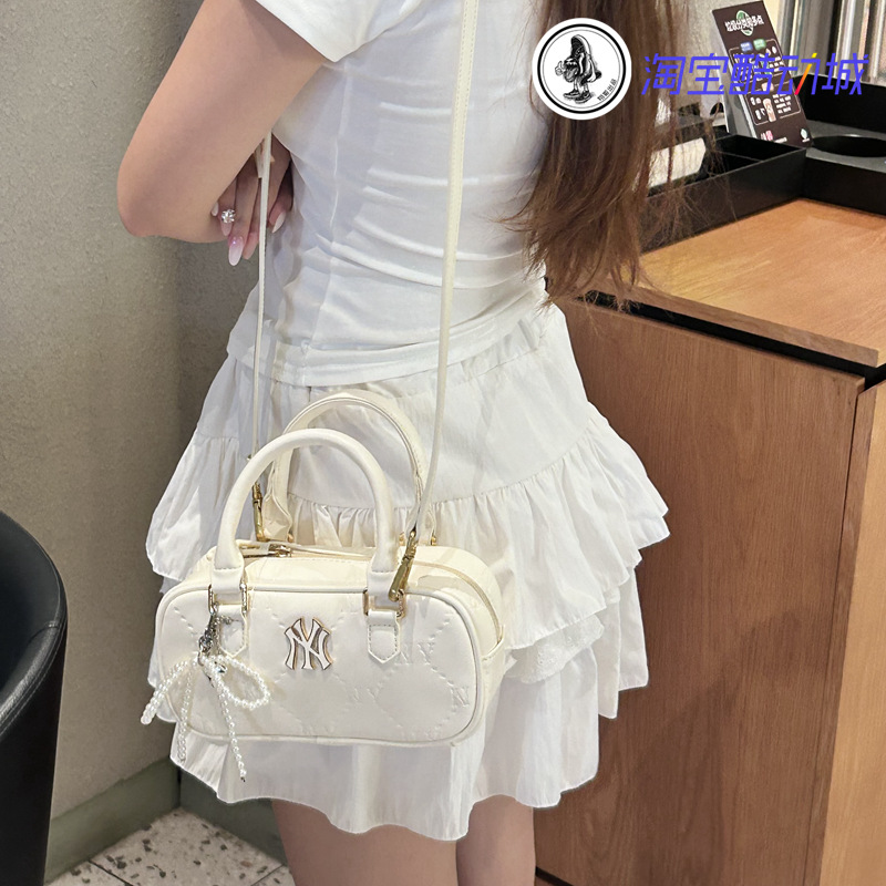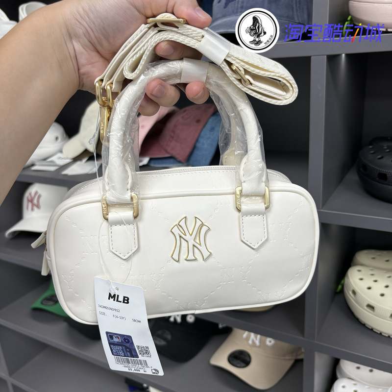 韩国MLB奶白色复古皮质手提包可拆卸肩带洋基队女款单肩斜挎包