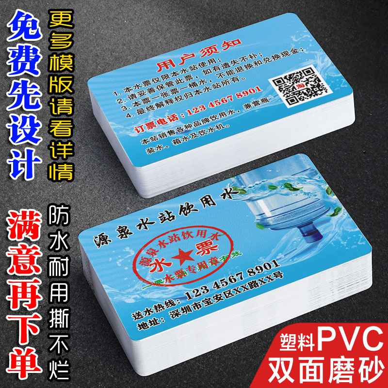 桶装水票月卡次卡名片制作s定订做塑料PVC防水送水卡水店水站配送