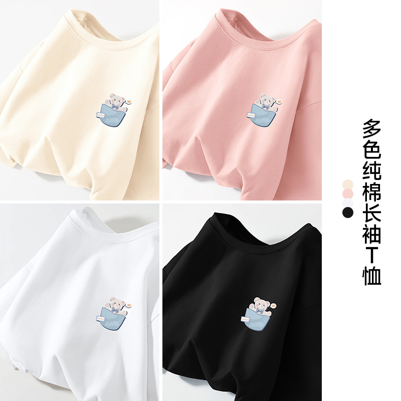 TeenieWeenie小熊秋季黑色棉质打底衫polo领长袖T恤白色外穿上衣