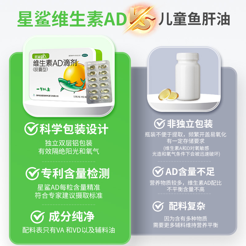 星鲨官方旗舰店星鲨维生素AD滴剂48粒0-1岁婴幼儿补充维AD胶囊
