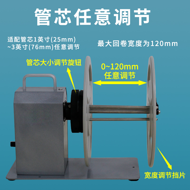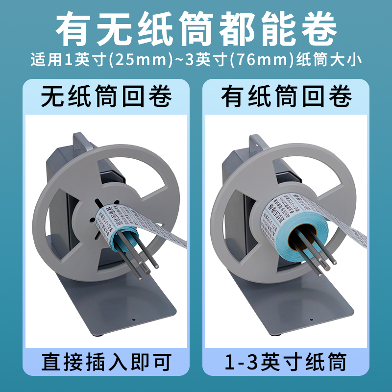 标签回卷器X6S三排全自动卷纸器洗唛缎带无需纸筒宽度可调管芯自动适应打印机速度双向回卷手动调速无级