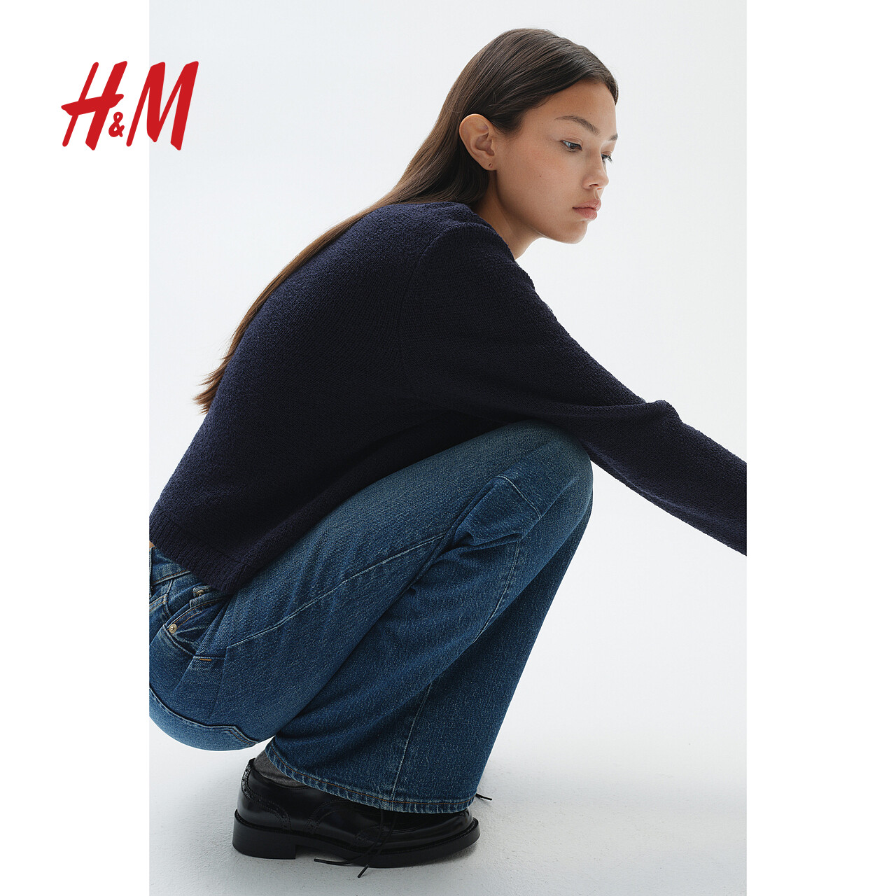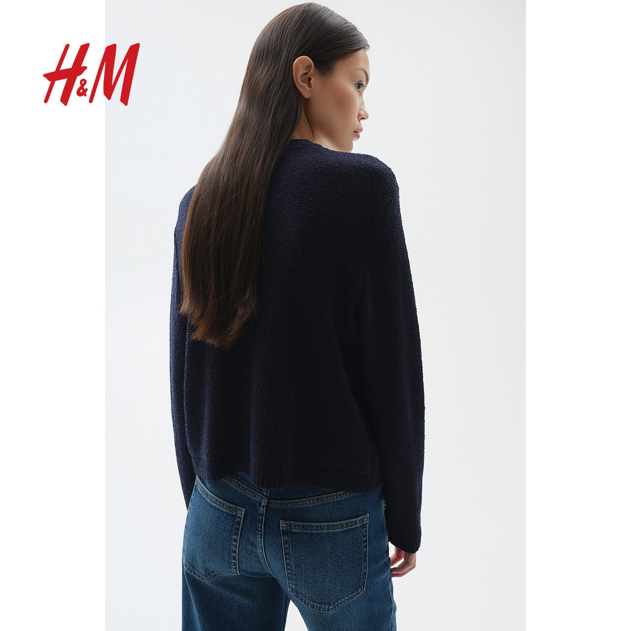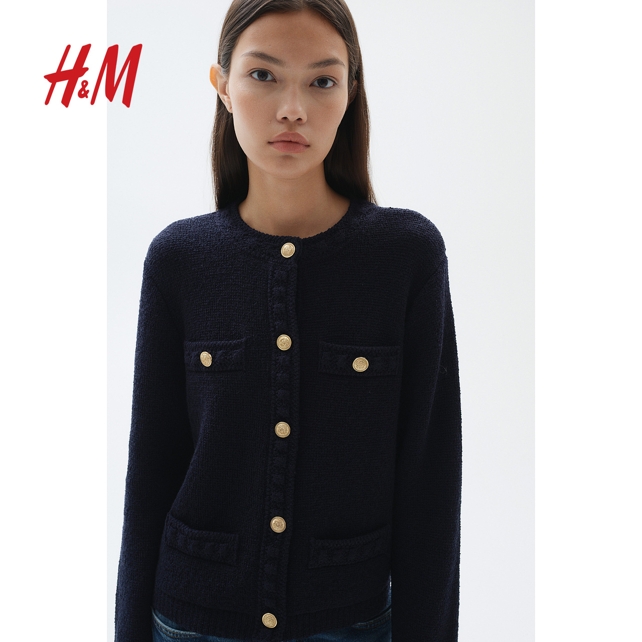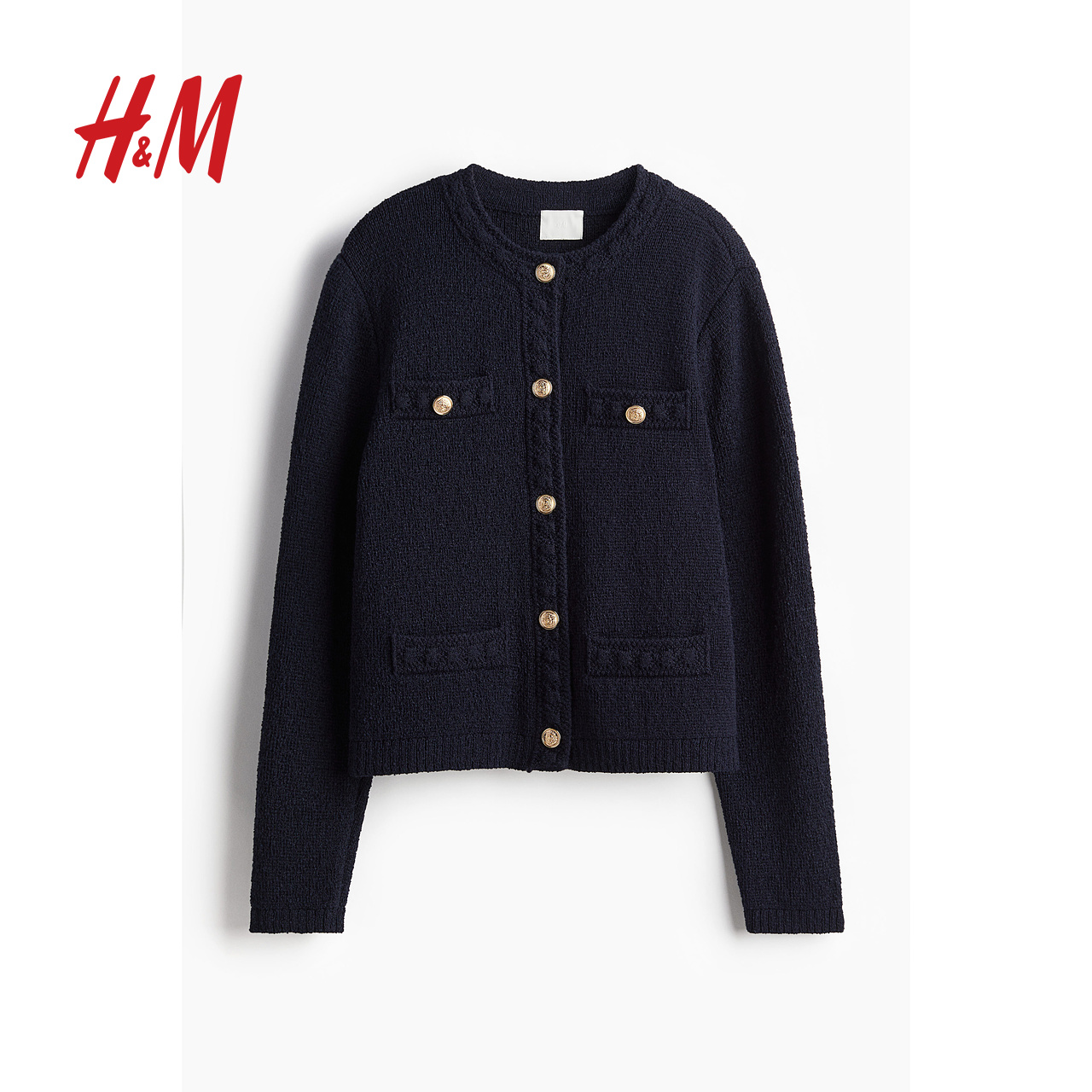 HM女装毛针织衫秋季法式慵懒短款廓形针织小香风外套上衣1194323